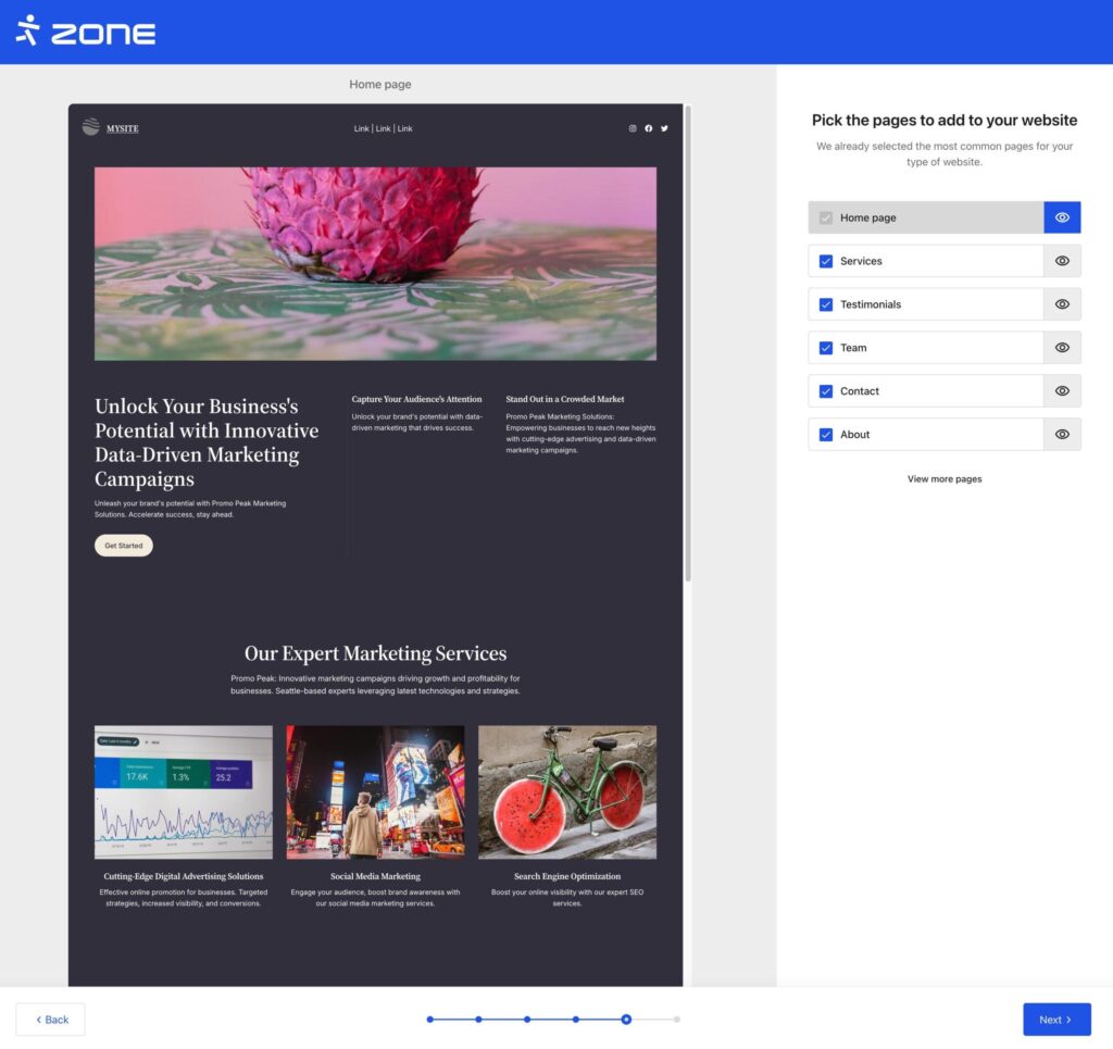 But let’s bring ourselves to the present day: if you are a Zone user, all it takes to make a website is a few phrases that describe your idea and it just takes a few seconds to turn that idea into a draft. From there, tuning your own website is a piece of cake: you can focus on finishing your website and the web designer you didn’t hire this time can focus on writing their memoirs.