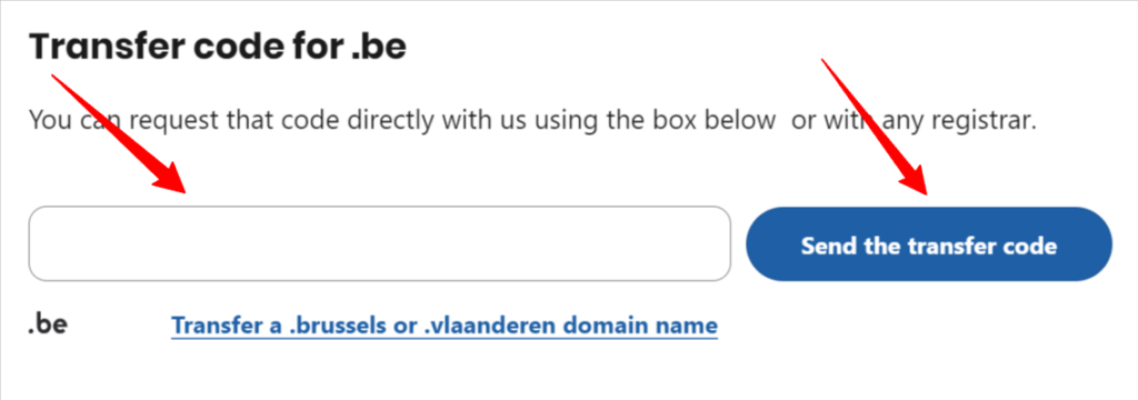 A domain authorization code is required to transfer a .BE domain, and the domain must also be unlocked by the current registrar.