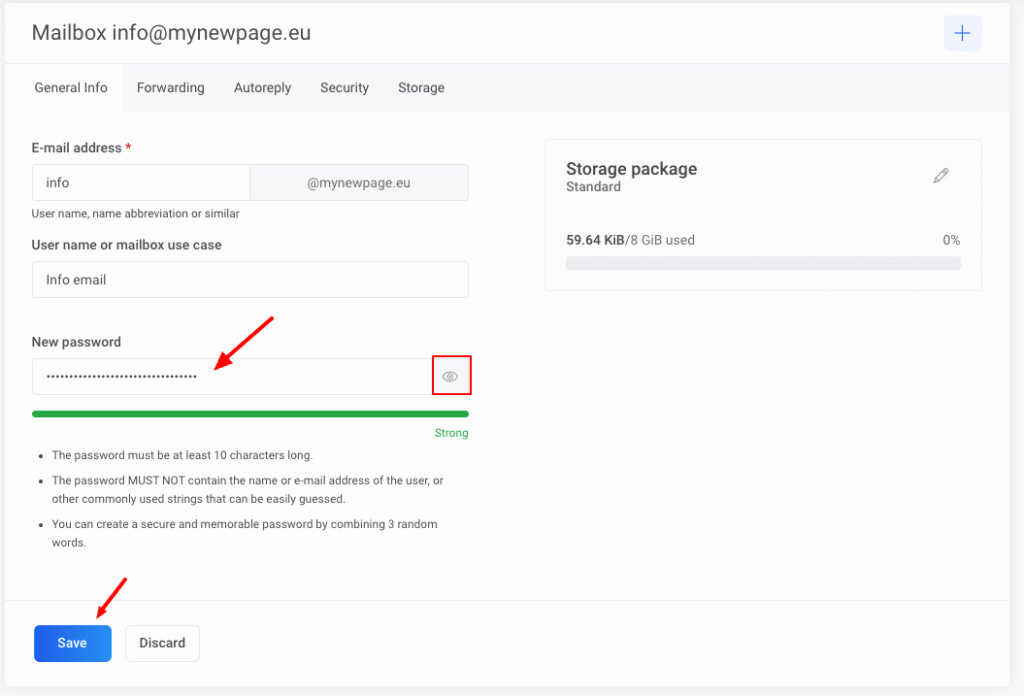 ATTENTION! Please be aware, that your account’s security depends directly on your password’s complexity. Your email account password must not contain the name or e-mail address of the user, or other commonly used strings that can be easily guessed.
