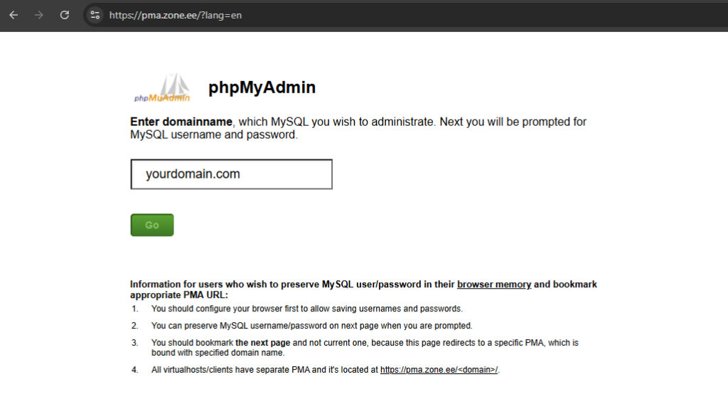 If you managed to close My Zone already, the direct link to phpMyAdmin is: https://pma.zone.ee/