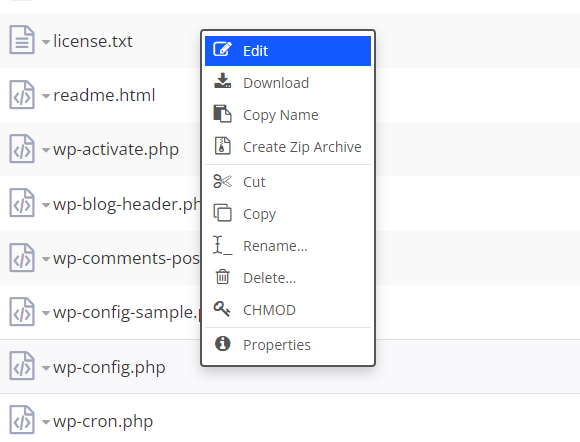 Open the directory where the WordPress page is installed (if the page is installed on the main domain, it is htdocs by default).