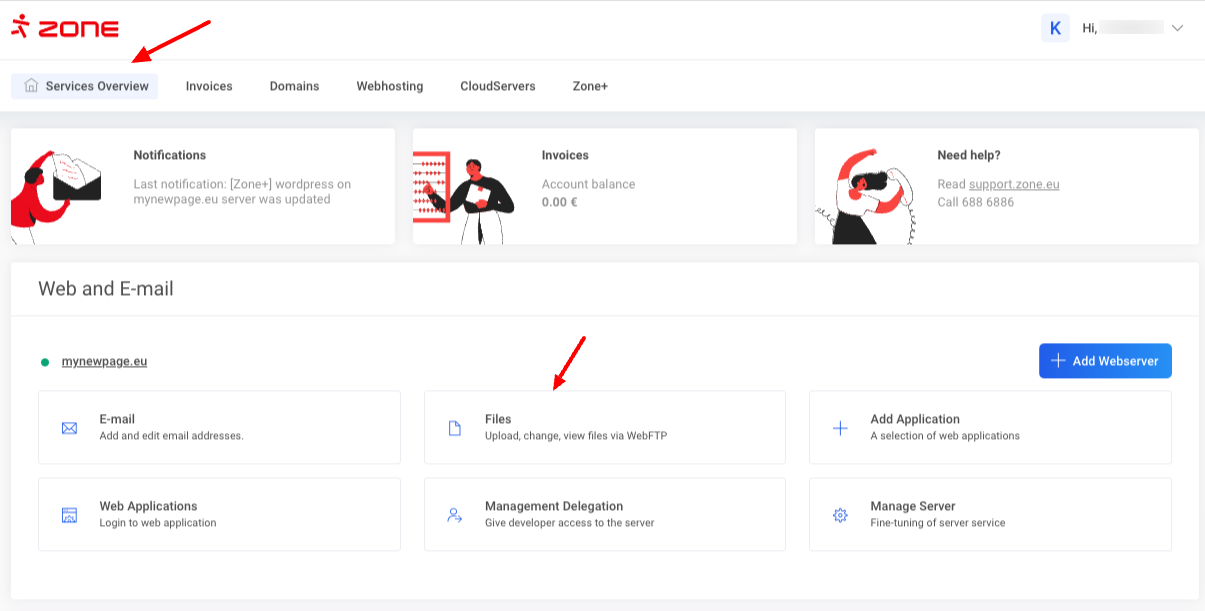 To do this, enter My Zone administration panel and click on the shortcut Files under Web and E-mail.