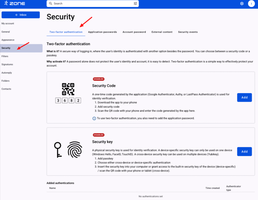 Choose Security -> Two-factor authentication.