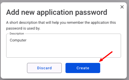 Then you have to add a Description of the application (e.g. Outlook or the name of the device) in the description box and press the Create button.