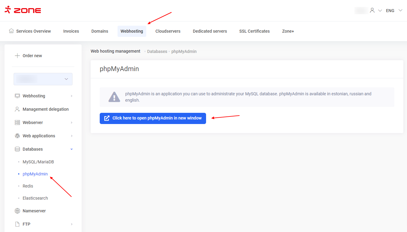 Accessing phpMyAdmin via server management