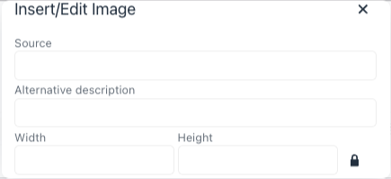 In a new window you can enter the Source or public URL of the image, and select Width and Height.