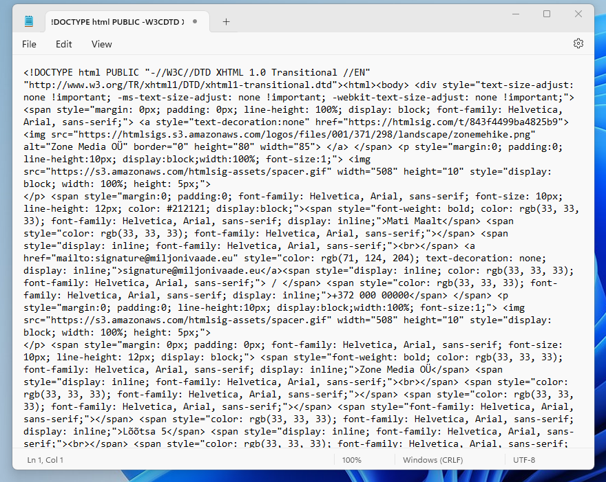 Select the entire content of the window by dragging the mouse or using the Ctrl+A key combination. Then right-click on the selected content and choose Copy, or use the Ctrl+C keyboard shortcut. Go back to Webmail and paste the copied content into the signature field. Right-click and select Paste from the menu, or use the Ctrl+V keyboard shortcut.