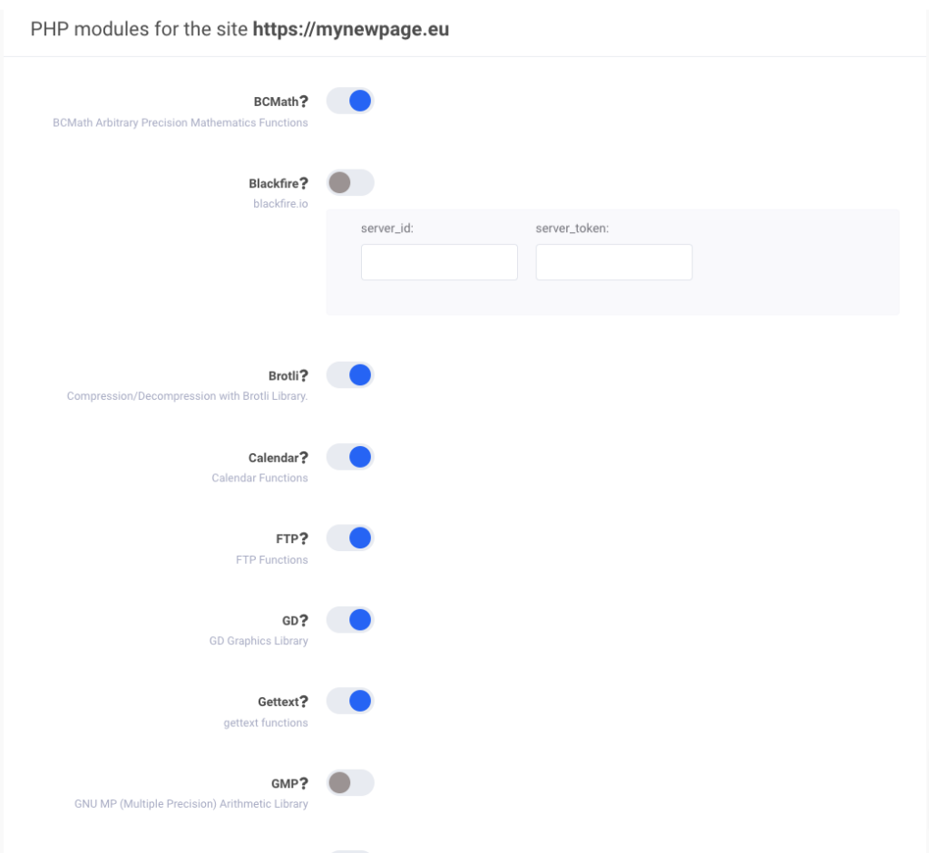 The most common PHP extensions can be changed directly from the My Zone Web Hosting Management.