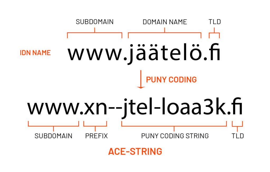 Most modern web browsers can still understand IDN names. NOTE: However, it is worth noting that if you have registered a domain containing characters and want to use email, the email associated with the IDN domain must be introduced to other users via the ACE string. For example, for INFO@JÄÄTELÖ.FI, the address would therefore be INFO@XN–JTEL-LOAA3K.FI. Therefore, we recommend that you only use a domain with Latin characters for email and use a domain with dot characters as an alias.