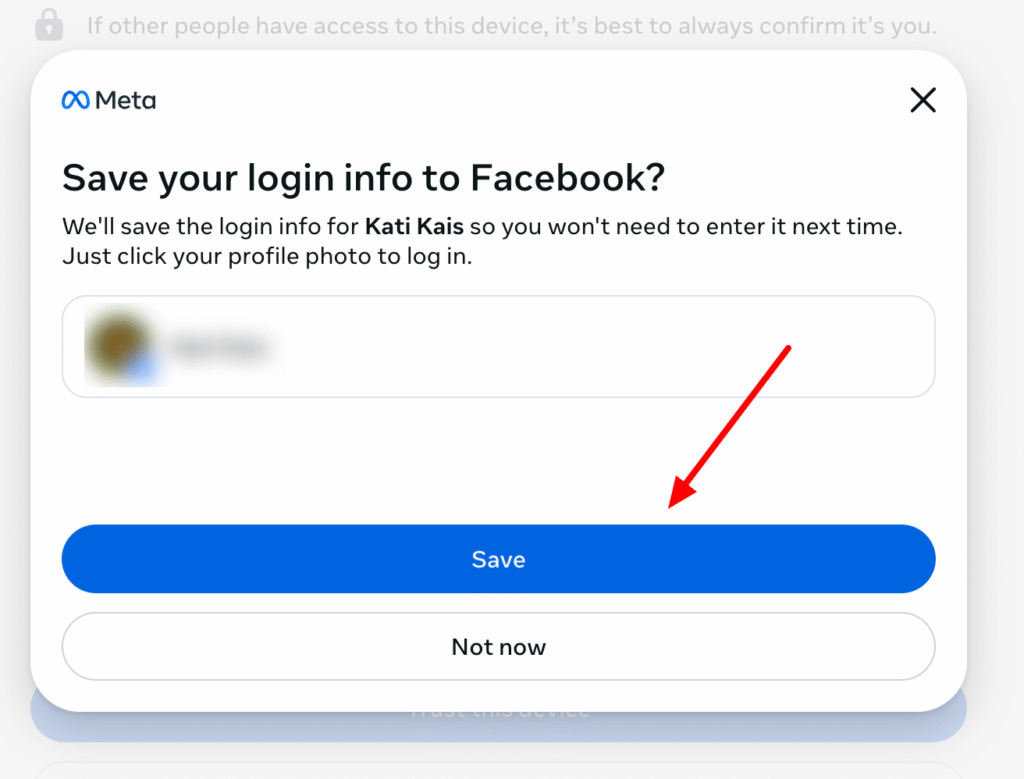 Once the Facebook 2FA code is entered, you will need to click Save in the next window.