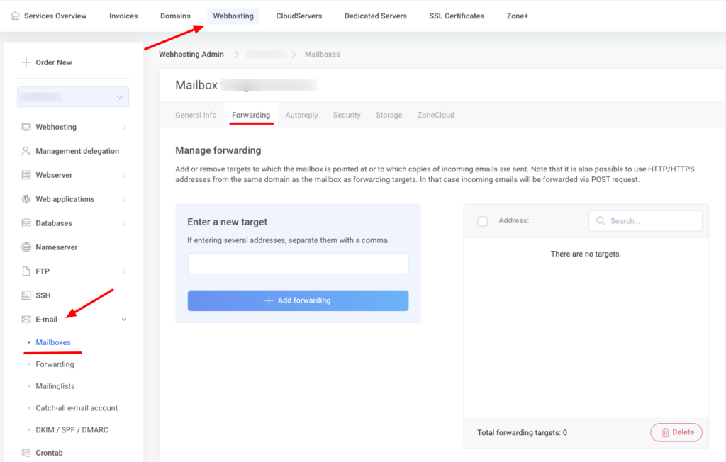 You can add Mail-to-http redirection URLs in My Zone control panel under Web-hosting -> E-mail -> Mailboxes, then click on the mailbox and choose Forwarding .