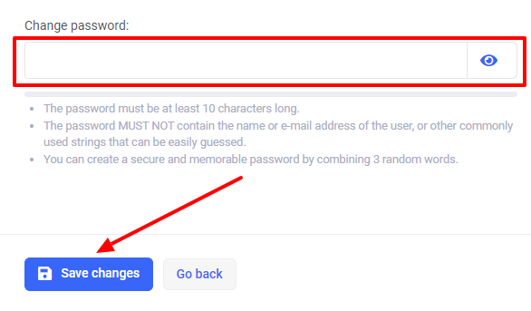 When setting a password, please keep the following conditions in mind. To change the password, press Save changes.
