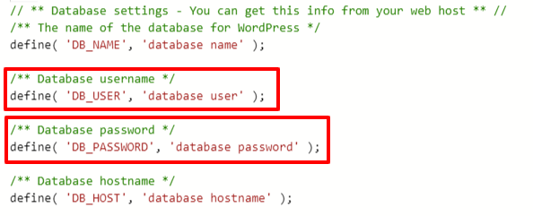Additionally, you can also find the database name associated with WordPress and the hostname of the database server in the file.