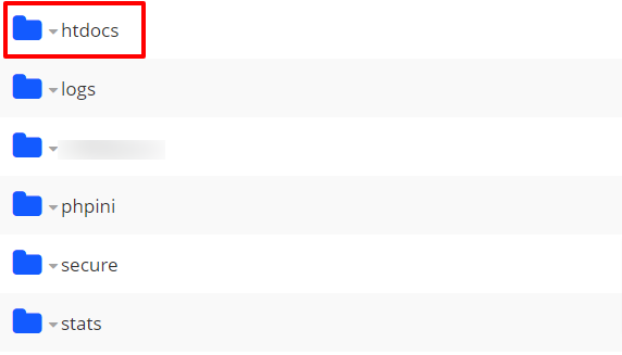 WordPress installed on the main domain is located by default in the htdocs folder. If WordPress is installed on a subdomain, navigate to the corresponding subdomain folder.