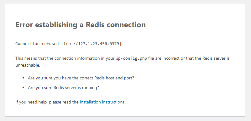 WordPress error “Error establishing a Redis connection”