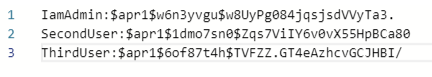 The contect of the .htpasswd file is very straightforward – all you need to do is enter the access data in the following form: username:encryptedpassword. One user must be per row and the password must be encrypted.