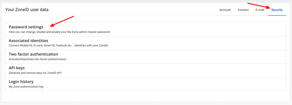 Disabling password login is possible only if your ZoneID account has been connected to any tools of authentication (Mobile-ID, Smart-ID, ID-card or Facebook) and if 2FA support has not been activated. If 2FA is activated, a verification code is always requested when logging in.