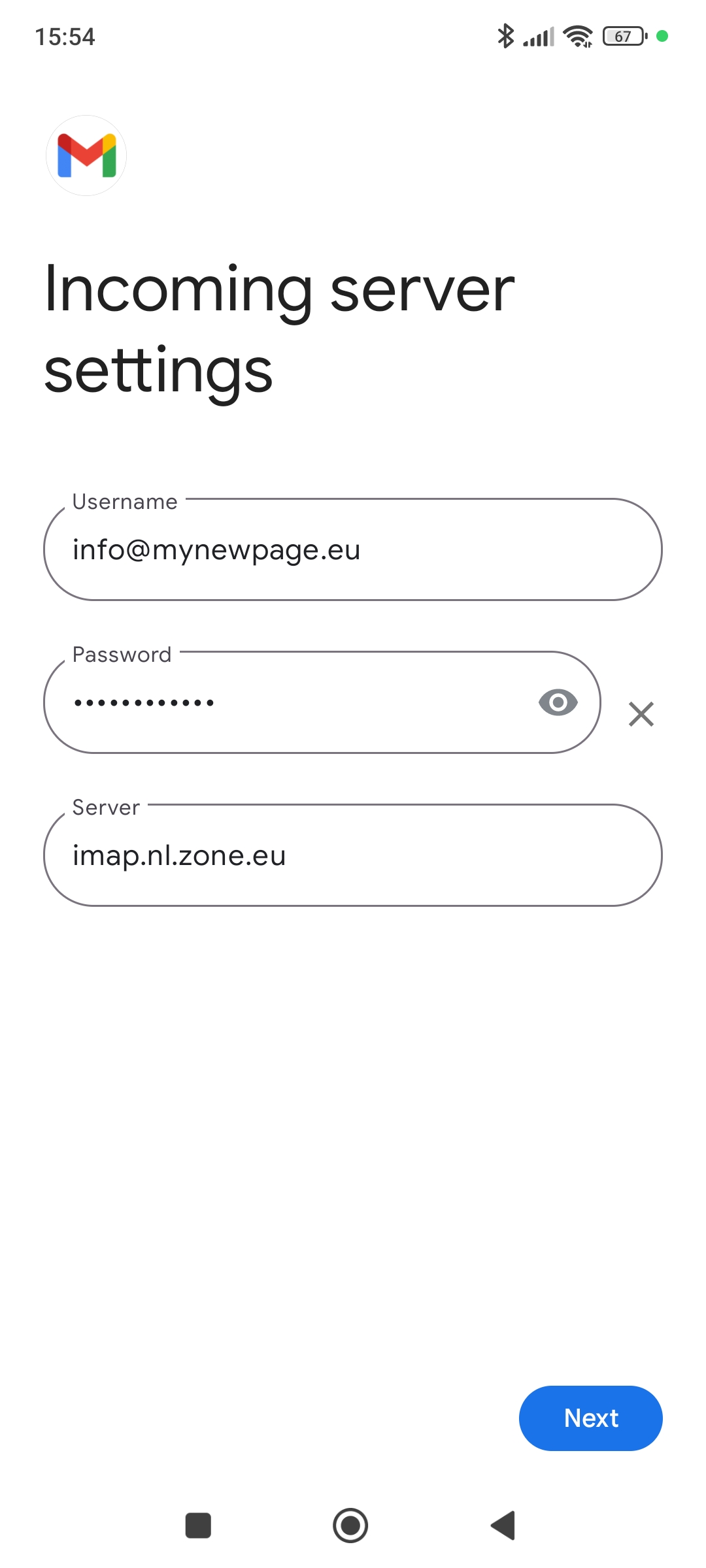 6. Enter incoming mail server imap.nl.zone.eu, then tap NEXT.