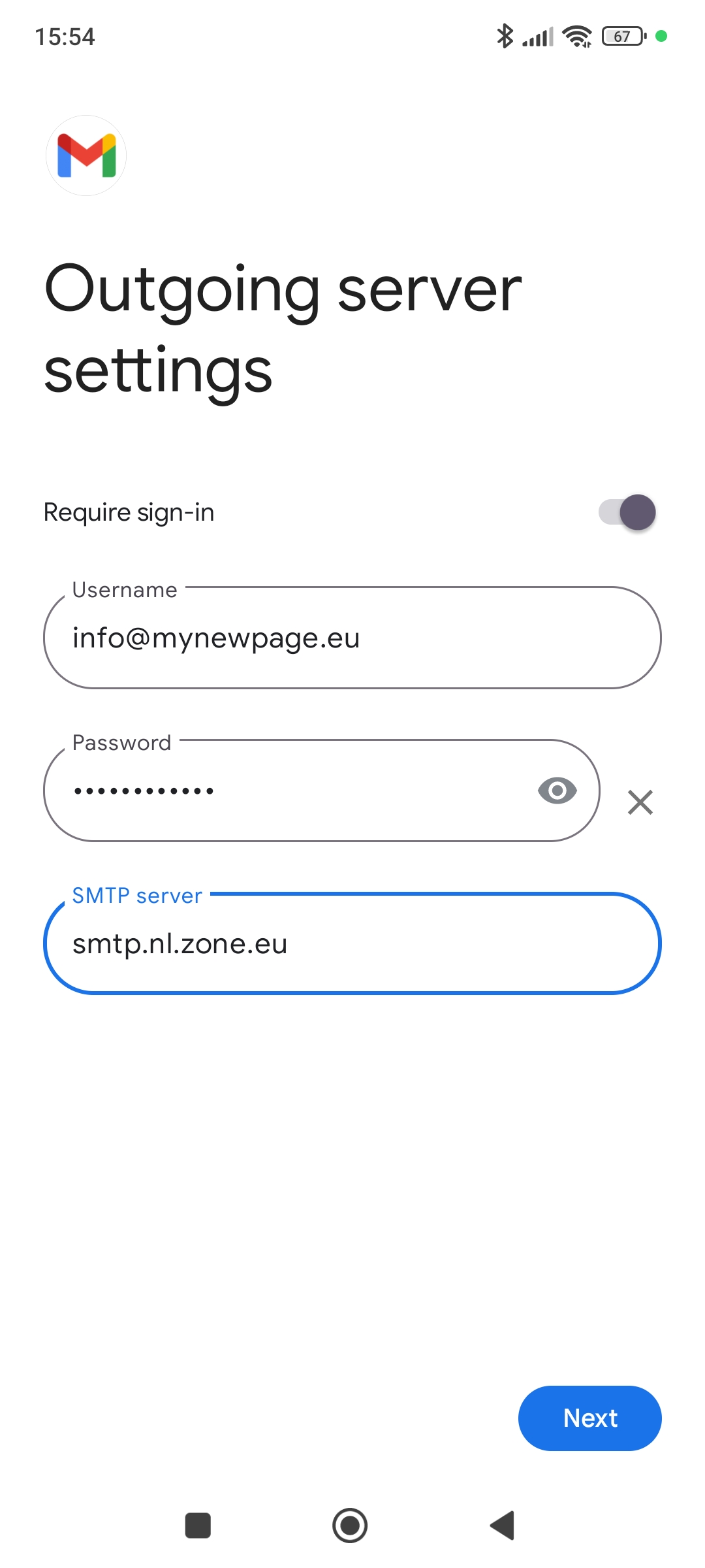 7. Enter outgoing mail server smtp.nl.zone.eu and tick the box Require sign-in.