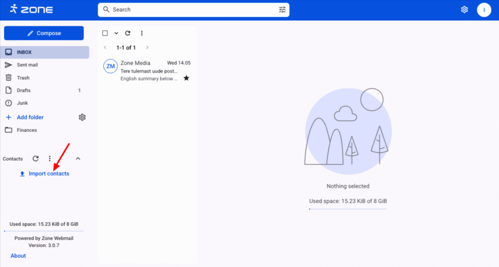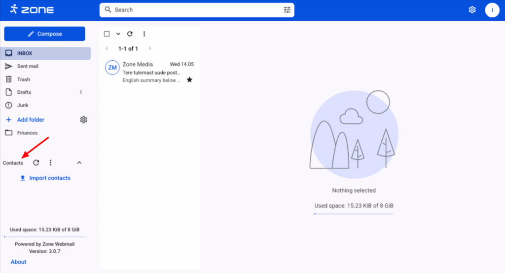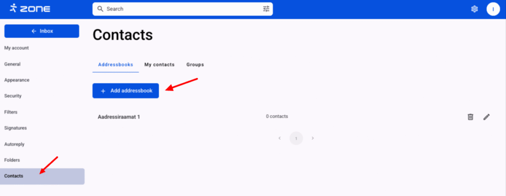 Address book can be added by clicking on the gear icon on the top right and View all settings.