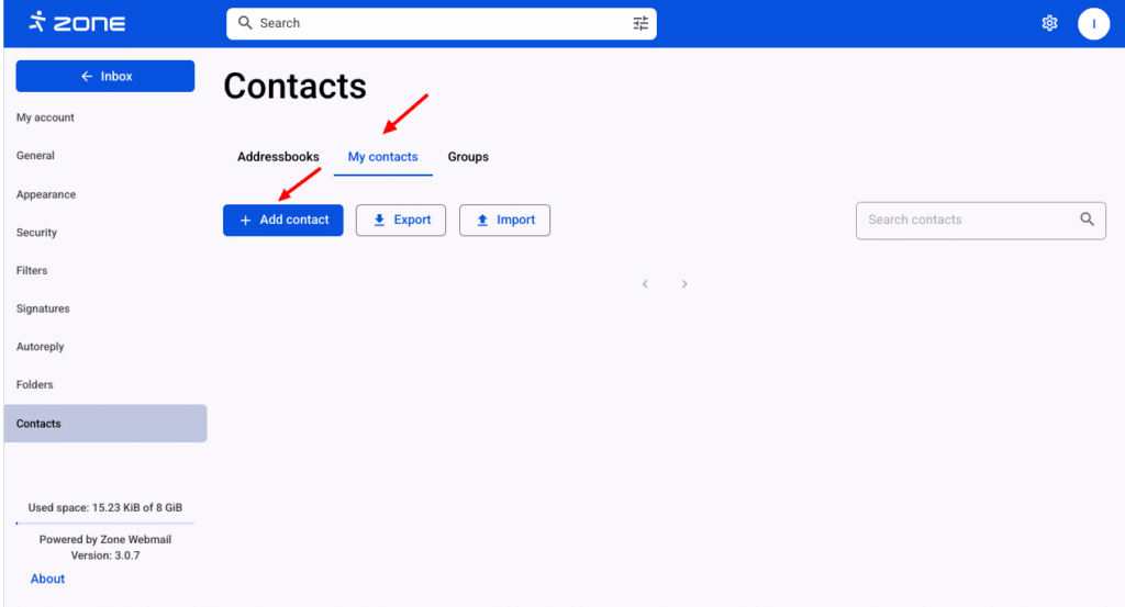 If you have several contacts, you can also split them into separate groups. To create a group, click on the Add group button.