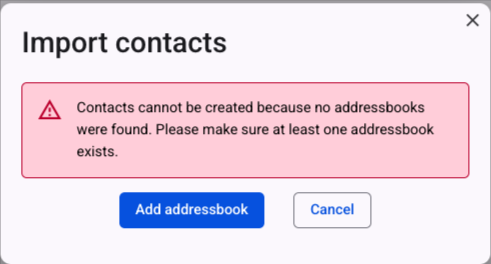 If you try to add contacts before adding them to the address book, the following error message is displayed.