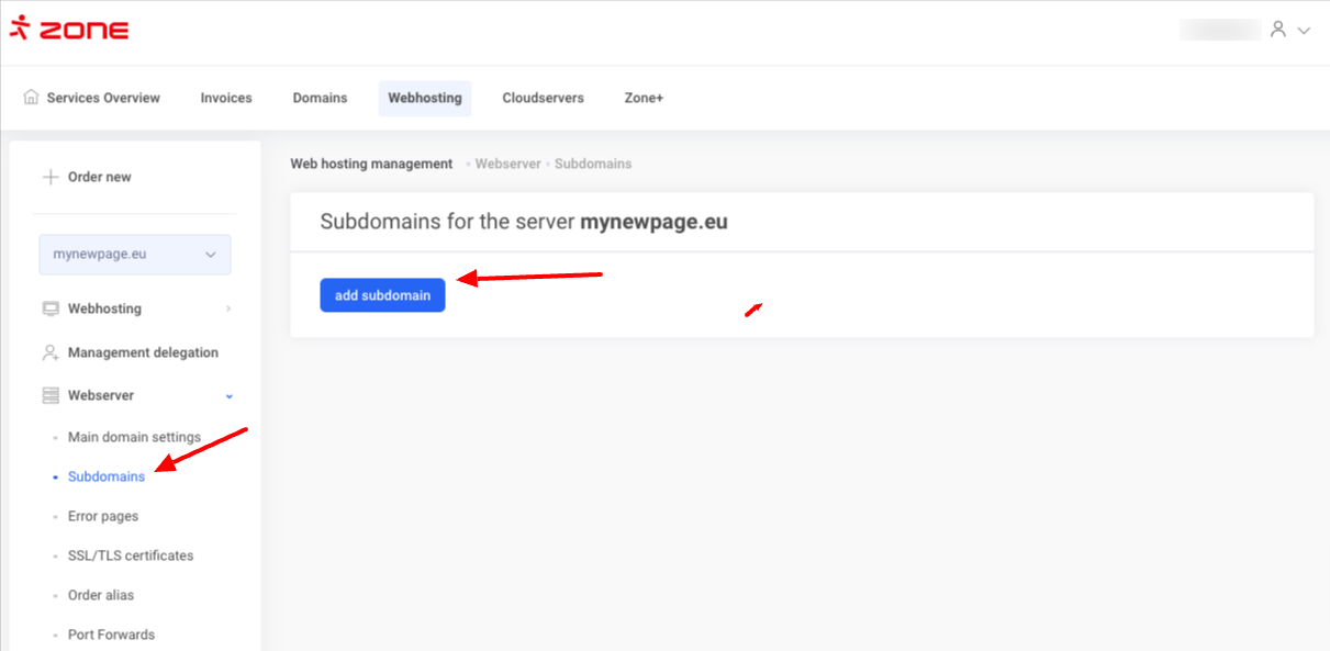 - Is a part of a domain that is located before the main domain, or a prefix, e.g. webmail.zone.eu.