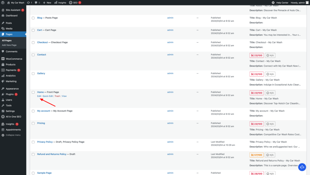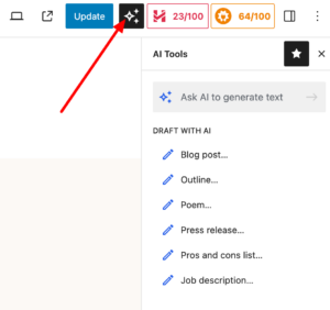 Examples: “How to turn off commenting?”, “How can I add a new image?”, “Where can I update plugins?” – and artificial intelligence always helps: - WordPress’s built-in text editing AI. First of all, please choose “Pages” on the left, then for example choose “Edit” under “Home page”, and there’s an AI icon in the top right corner that allows the AI to write, edit, add, shorten/lengthen and more: