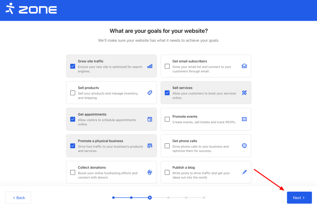 The next steps are to choose the goals of the website and the initial design, which you can change later if necessary: