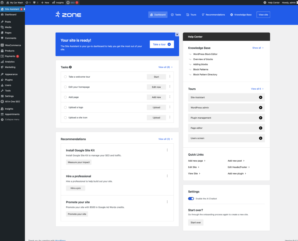 You can enable WordPress Assistant by installing the new Zone+ application: