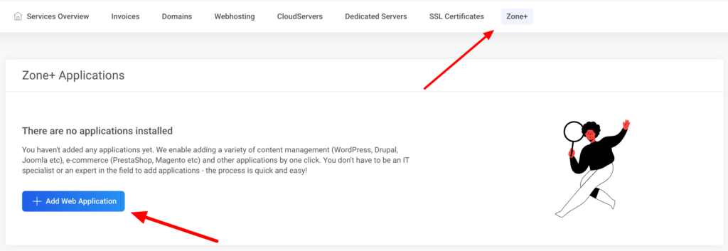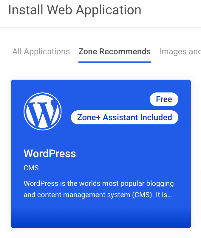 - You can install new WordPress using the Zone+ application manager