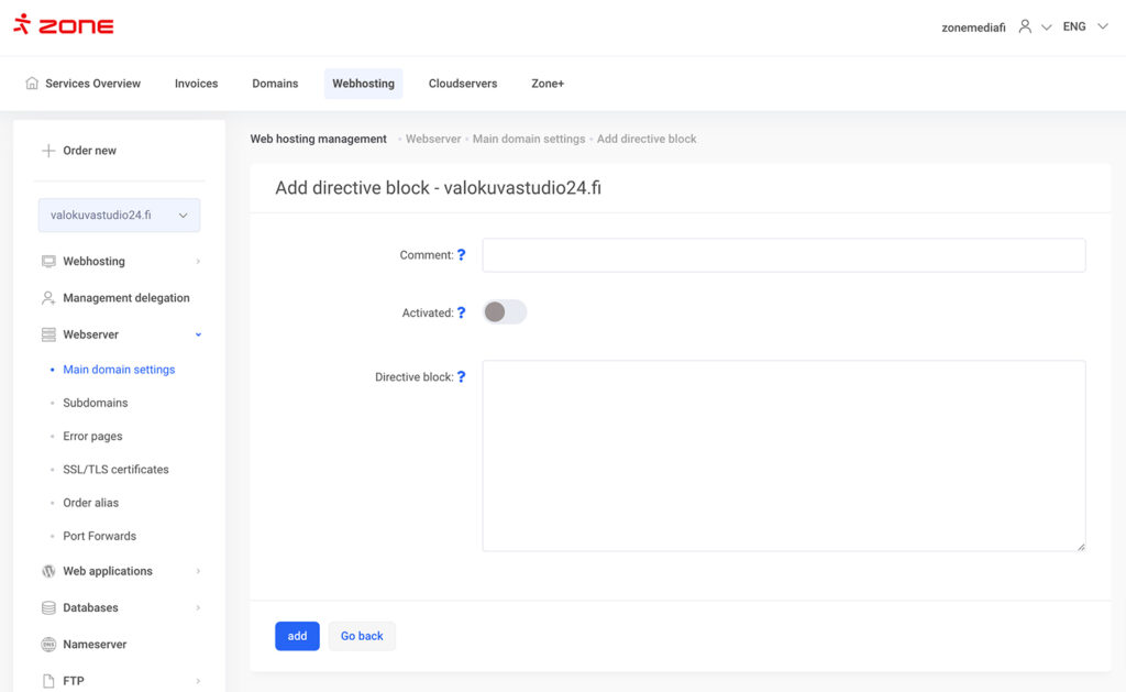 In order to remove this xmlrpc.php POST requests restriction, you need to log into My Zone control panel and in the Webserver section of the web hosting management under Main Domain Settings -> modify -> Apache Directives -> in the add directive block window, add a directive block with the following content: