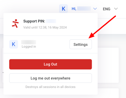 The API key can be generated by logging in to My Zone and selecting Settings in the top right corner: